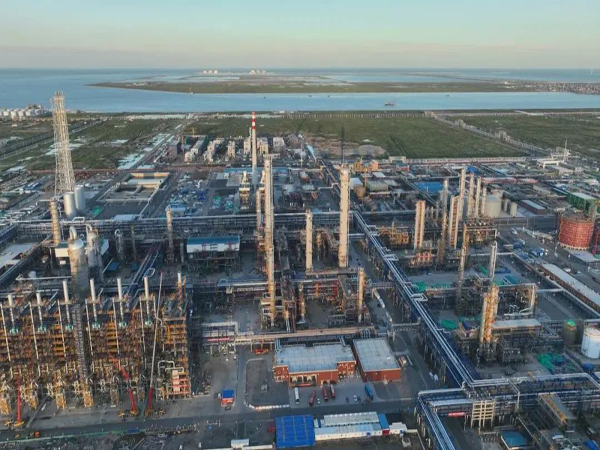2025年6月11日8时18分荆门60万吨/年环烷基特种油项目施工现场迎来“大件...